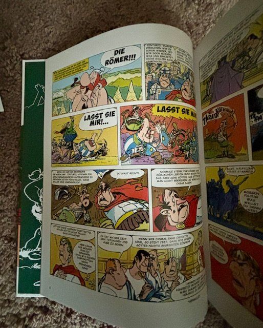 Die im Ausgangspost gezeigte Kolorierung ist eine Fan-Neukolorierung die ich vor ein paar Jahren schon mal in digitaler Form zu Lesen bekam. Die Kolorierung aus dem Beitrag von Nullnullsix (Asterix erobert Rom) ist die ursprüngliche, in Holland veröffentlichte, Farbversion.