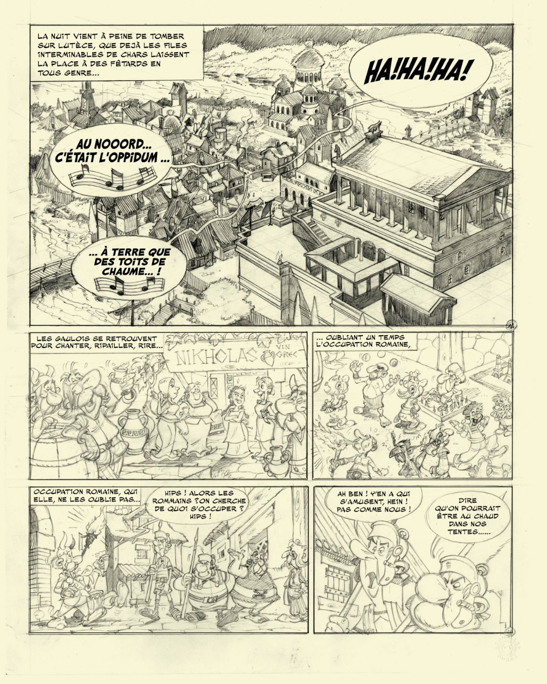 Sowohl bei den Asterix-Bänden, als auch hier ärgert mich seit langem die Angewohnheit, Häuserumrisse und andere Hintergründe mit Vorliebe fliederfarben zu kolorieren - jetzt ist zum ersten Mal Thierry Mébarky nicht daran beteiligt, aber dieser Effekt tritt nun eher noch stärker auf. Wer bei den Èditions Albert René mag diesen ausgefallenen Geschmack haben?