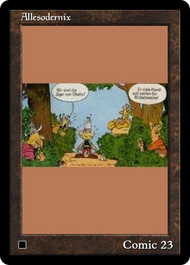 Bei Allesodernix war das ein bischen schwierig, ich habe nur die eine Größe der Karte und wenn ich da das Bild einfüge, entweder ist es nur halb da oder ich kann es verzerren.Erik hat geschrieben:Was mir bei mehreren Deiner Karten auffällt ist, daß Du die Seitenverhältnisse (Länge x Breite) der Bilder nicht proportional anpaßt. Dadurch sind mehrere Bilder stark verzerrt (z.B. Allesodernix, Automatix3). Das sieht nicht so schön aus.