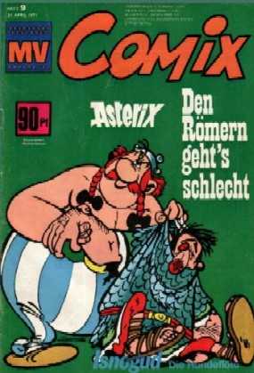 Am 16. Dezember 1968 publiziert dann der Stuttgarter Ehapa Verlag "das erste große Asterix-Buch" für 2,50 Mark in einer Auflage von 50.000 Exemplaren. Bereits am 14. Oktober 1967 erschien in MV-Comix, der "spannenden Abenteuer-Illustrierten" die erste Geschichte, die im gleichen Jahr als "Großer Sonderband I" veröffentlich wurde. Jeder weitere Band startete mit einer höheren Auflage als zuvor. Ohne Rücksicht auf die Chronologie der Serie präsentieren sich bis 1969 die Geschichten in willkürlicher Aneinanderreihung, ein Manko, das den ersten sieben Titeln immer noch anhaftet. Die bisher erschienenen Bände erscheinen nach anfangs jeweils drei Bänden pro Jahr zwischenzeitlich nur noch in sehr sporadischer Reihenfolge. Mit den beiden neuen Autoren Didier Conrad und Jean-Yves Ferri, die 2013 die Asterix-Serie übernahmen, ist ein zweijähriger Rhythmus für Neuveröffentlichungen geplant.