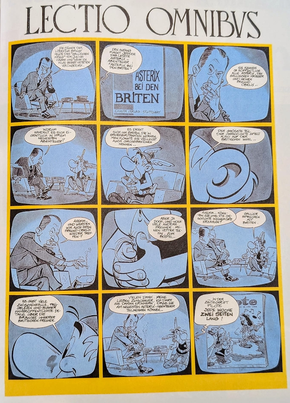 In der Nummer 306 vom 2. September 1965 wird auf der letzten Seite der neue Band "Asterix bei den Briten" angekündigt, in Deutschland Veröffentlichung in Band 3 der Gesamtausgabe. Der mit "Lectio omnibus" überschriebene Comic (Abbildung) zeigt den französischen Fernsehmoderator Pierre Desgraupes im Gespräch mit dem Titelhelden Asterix.