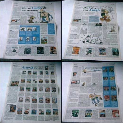 Auf der Comicseite der Tageszeitung Lübecker Nachrichten ist anlässlich des Erscheinens von "Asterix plaudert aus der Schule" vom 15.10.2003 bis 5.11.2003, also 4 Wochen lang, eine Serie von fast ganzseitigen Artikeln über Asterix erschienen (Seitenübersicht):