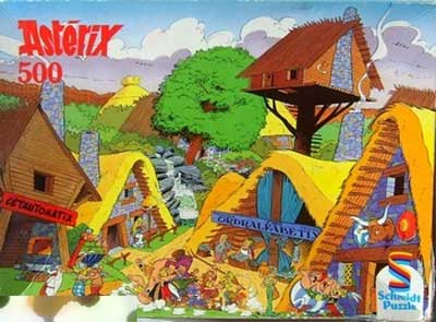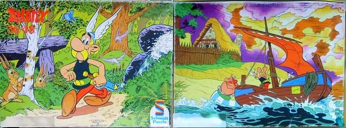In den vergangenen Jahren sind immer wieder Puzzle mit Asterix-Motiven erschienen. 1975 veröffentlichte das Unternehmen "FX Schmidt" (der Gründer war Franz Xaver Schmid) mehrere Puzzle, bevor anschließend die Rechte zum Veröffentlichen von Puzzlen mit Asterix-Motiven von der Firma "Ravensburger GmbH" ausgeübt wurden. 1996 wurde F.X. Schmidt von Ravensburger übernommen und ist seitdem hundertprozentige Tochter des Unternehmens. Der Name F.X. Schmidt wird seit 2002 nur noch für Kinderbücher verwendet.
