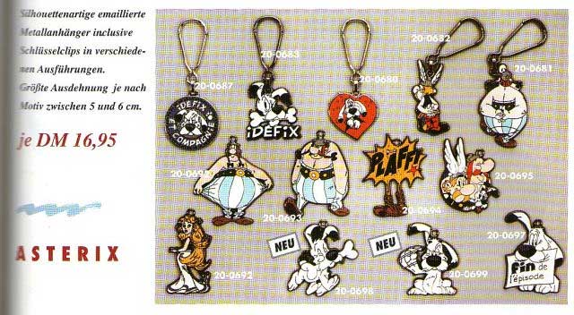 Von Corner wurden auch in Deutschland eine Reihe von flachen, emaillierten Metall-Schlüsselanhängern mit Clips sowohl bei Hummelcomic (Abbildung aus dem Katalog 1998 mit eigenem Bestellnummern-System) als auch in niedergelassenen Comicläden verkauft (Motivbeispiele). Ob tatsächlich alle Motive erhältlich waren, ist jedoch nicht bekannt. Insgesamt umfasste die Serie folgende 25 Motive mit den (Original-)Seriennummern (Mit einem * gekennzeichnete Artikel waren bspw. bei Hummelcomic erhältlich):