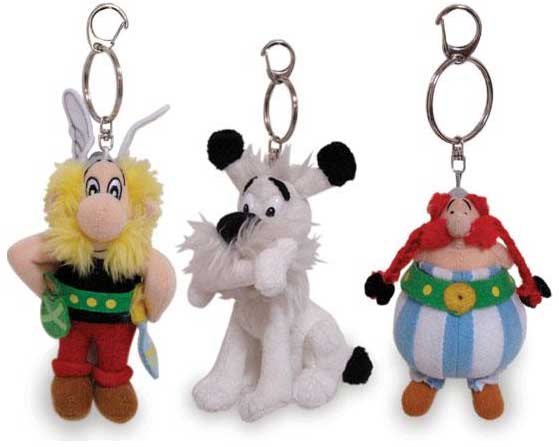 Der spanische Hersteller BestPlay hat nicht nur Figuren aus Plüsch im Angebot, sondern bot ab 2006 auch Schlüsselanhänger mit jeweils einem Motiv von Asterix, Obelix und Idefix als 18 cm lange Ausfertigung mit einem Schlüsselring oder einem Saugnapf an, die Figuren selbst sind nur etwa 12 cm gross (Motivübersicht).