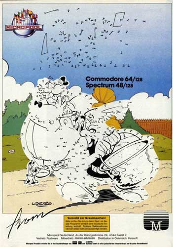 Sowohl für den 48/128k Sinclair ZX von Spectrum als auch den C64/128 gab es das Asterix-Spiel "Asterix And The Magic Cauldron" von Melbourne House bei Micropool Deutschland aus dem Jahr 1986. Das Spiel wurde in einschlägigen Spielemagazinen bewertet und auch mit einer besonderen 'Zeichnen nach Zahlen'-Aufgabe beworben, es enthielt auch eine deutschsprachige Spielanleitung.