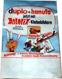Bei "duplo+hanuta" erschien 1981 ein in kompletter Form abgepacktes Asterix-Würfelspiel von Ferrero, für das die spätere der beiden Sammelbilderserien verwendet wurde. Diesem Spiel gehörten das als Spielplan gestaltete Würfelbrett einschließlich der Spielwürfel und Spielfiguren sowie ein Satz aller Klebebilder an. Es war mit einem Klarsichtdeckel verschlossen, unter welchem sich ursprünglich auch ein Werbe-Einlageblatt zu diesem Aktionsangebot befand.