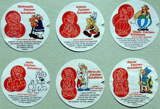 Neben den Nutella Sammelheften befanden sich 1976, 1977 und 1980 im Deckel der Nutella 500-Gramm-Gläser jeweils eine Zeichenschablone, womit sich eine Figur aus der Asterix-Serie zeichnen ließ. Die Schablonen von 1977 und 1980 sind in zwei verschiedenen Größen erschienen, zu 6,8 cm und 5 cm im Durchmesser. Die Serien werden preislich auch unterschiedlich bewertet. 2005 ist zum 40-jährigen Nutella-Jubiläum eine weitere Serie in den 400g und 750g Aktionsgläsern erschienen. In diesen vier Serien waren folgende Schablonen enthalten:
