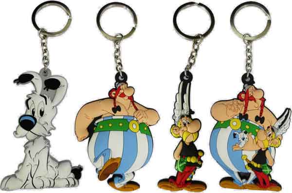 Im März 2016 wurden die wahrscheinlich 2015 hergestellten Schlüsselanhänger mit Motiven aus der Asterix-Serie bei der Buchhandelskette Thalia verkauft. Nach Angaben auf der Rückseite wurden die in China hergestellten Reliefanhänger vom niederländischen Importeur Kayford Holdings, der auf Merchandingsprodukte spezialisiert ist, importiert. Der in Hongkong ansässige Importeur, der die Artikel in eigenen Fabriken auch produziert, bietet als Lizenznehmer noch andere Asterix-Produkte an. Ob alle auch im deutschen Sprachraum verkauft wurden, ist nicht bekannt.