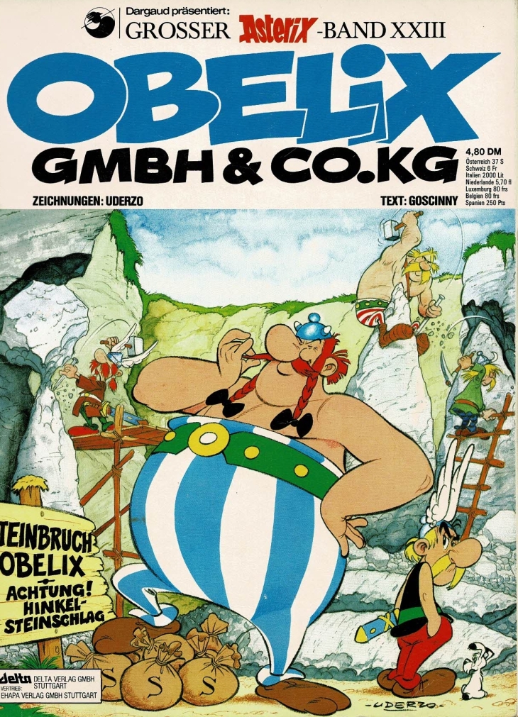 Obelix GmbH & Co.KG, Preisaufdruck 4,80 DM. Titel als letzter im Hinkelstein auf der Rückseite, aber der Preisaufdruck ist nicht mittig, wie normalerweise, sondern auf der rechten Seite. Steht so noch nicht auf Michaels Seite, Impressum ist genau wie bei der Erstauflage, die genannt wird,