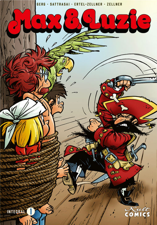 Kult Comics bringt seit letztem Mai eine sogenannte "Integral-Reihe" heraus, in der einige Max & Luzie-Comics in Sammelbänden in chronologisch richtiger Reihenfolge nachgedruckt werden (sollen). Der erste Band im Hardcover hat 199 Seiten und beinhaltet die Abenteuer "In der französischen Revolution", "Bei den Germanen", "Beim 'Alten Fritz'", "Bei Otto Lilienthal", "Bei Galileo Galilei", "Im alten Siam", "Bei den Piraten" und "In Hollywood" - das heißt die Hefte Nrn. 20 bis 27, jeweils auch mit den Umschlagseiten mit Cover und geschichtlichen Zusatzinformationen. Die Qualität von Papier und Druck ist, soweit ich das beuteilen kann, gut. Der Band weist eine hochwertige Fadenheftung auf. Der redaktionelle Teil ist immerhin 20 Seiten lang. Mit "Bei den Germanen" ist eine der besonders Asterix-nahen Episoden enthalten; es ist in diesem Band aber auch die einzige.