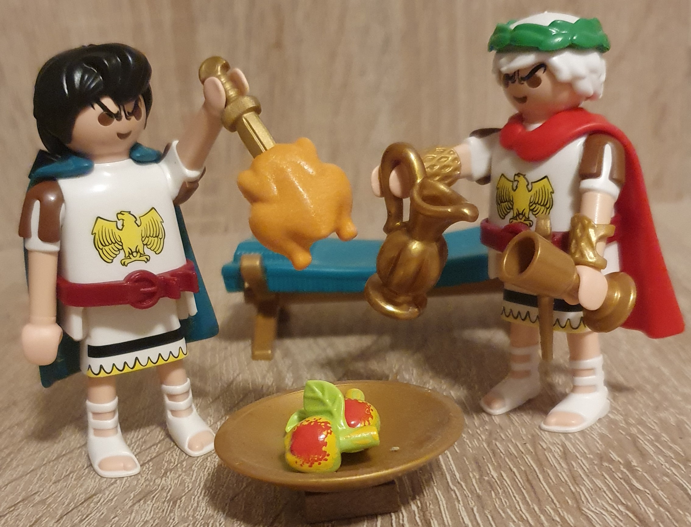 Brutus demonstriert Caesar, wie gut sich sein neuer Dolch eignet, um Hähnchen aufzuspießen :roll: